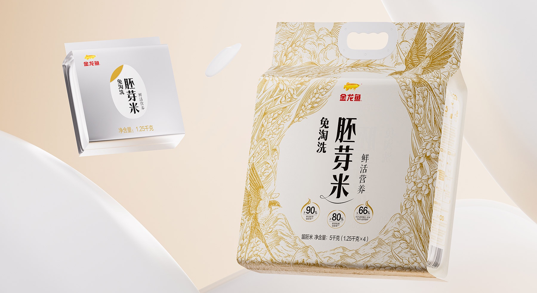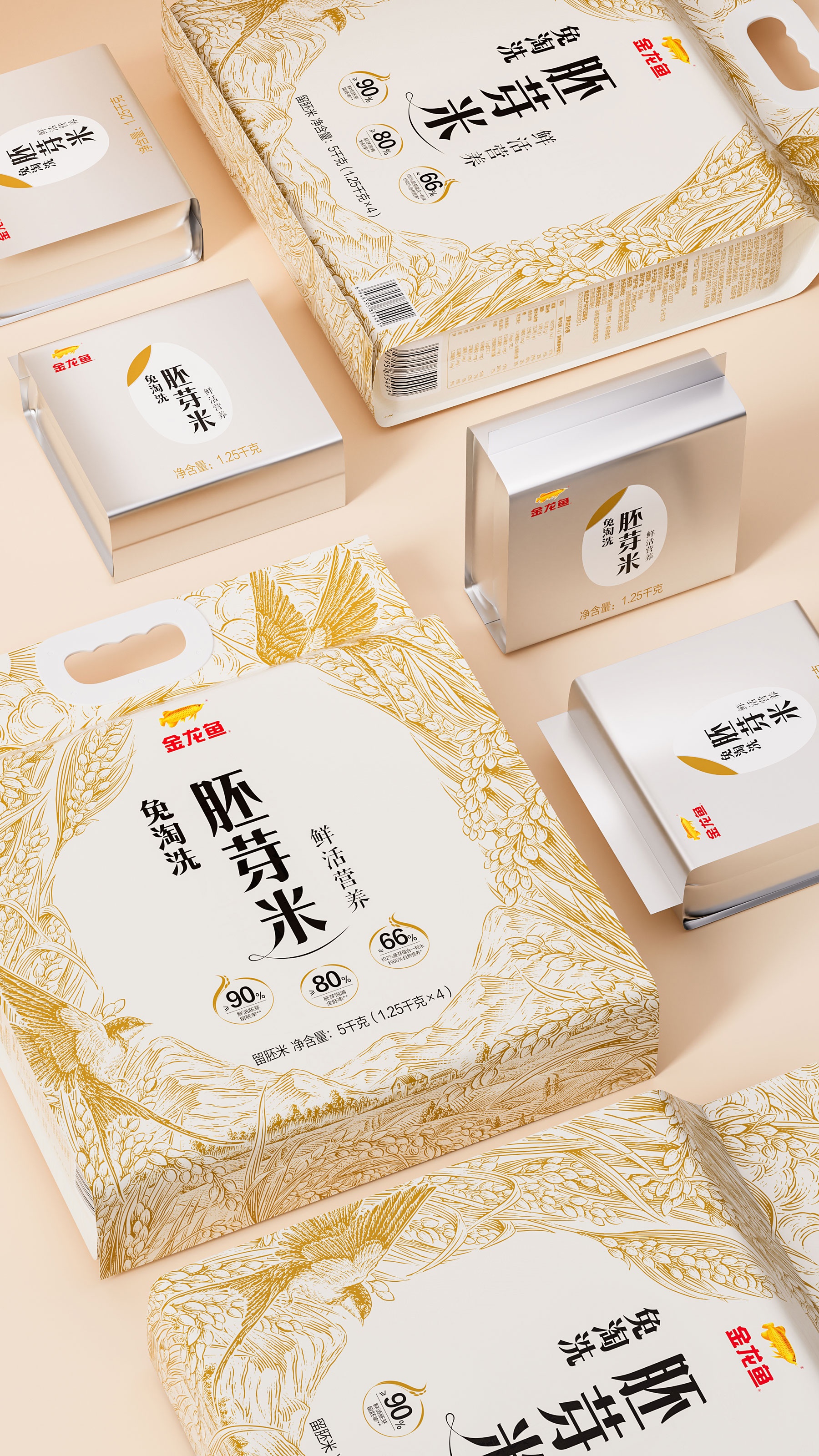 金龍魚大米、金龍魚大米包裝設計、金龍魚胚芽米包裝設計、大米包裝設計