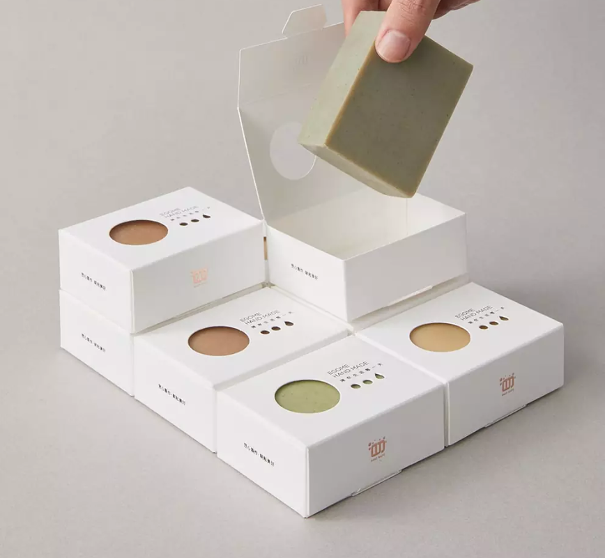 包裝設計公司設計了Egome包裝。手工皂是使用天然油和堿液手工制成的肥皂。基本上,這是油與堿液之間皂化反應的結果,可在固化和成熟程序后用于洗滌和清潔。他們的客戶臺灣從事手工皂的生產和銷售。它希望重新設計品牌形象的包裝,將設計定位為“純”。設計師提出了一個簡單的概念,即通過設計來樹立品牌形象并占領年輕市場。通過挖掘包裝盒可以呈現出不同顏色的肥皂,這構成了整個視覺效果的特殊之處。